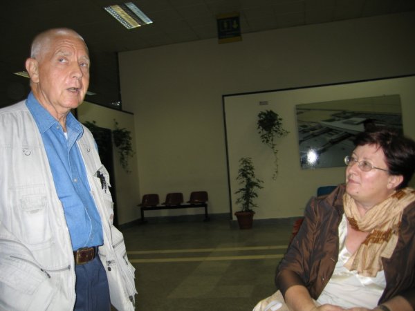 Na aleksandrinskem letališču sta se pred objektiv postavila kustodinja Goriškega muzeja Inga Brezigar in aleksandrinec, g. Gilbert Civardi.