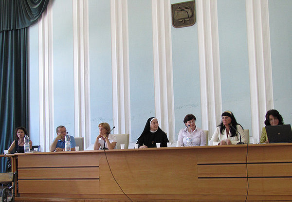 Dejana Baša, Inga Brezigar Miklavčič in s. Gabrijela Konciljadr. Mirjam Milharčič Hladnik in prof. dr. Bojan BaskarDruštvo žena Prvačine